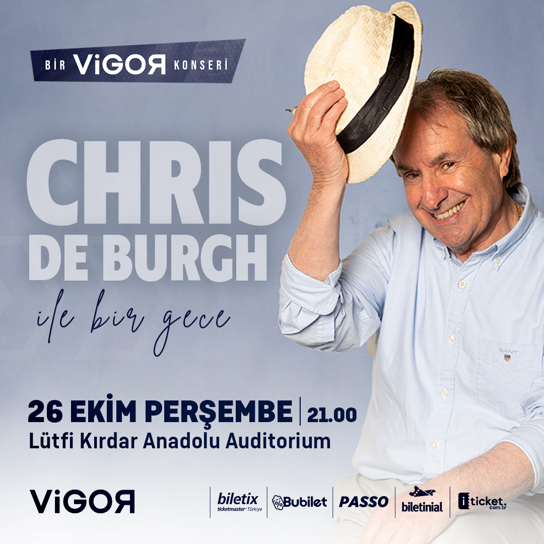 Geçtiğimiz 50 yılın en önemli müzisyenlerinden birisi olarak gösterilen aşk şarkılarının unutulmaz bestecisi Chris de Burgh, 26 Ekim Perşembe gecesi Vigor Sanat organizasyonuyla (ICEC) Lütfi